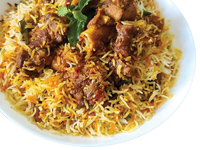 Cooked in seasoned broth with rice, goat, and an array of spices served with salan and raita